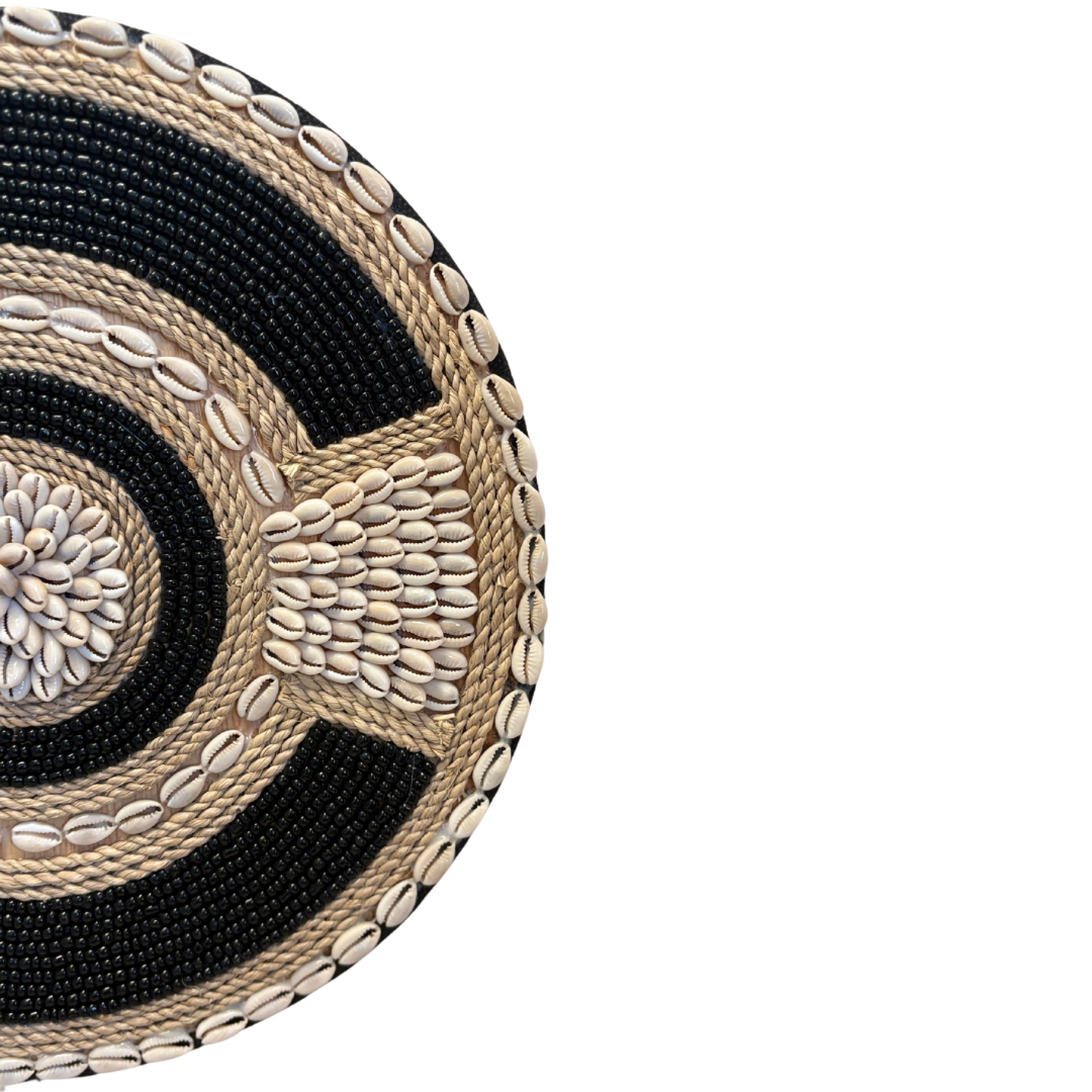 Voeg een vleugje natuurlijke elegantie toe aan je interieur met dit prachtige schelpenornament op standaard. Dit unieke stuk is met de hand vervaardigd in Bali en combineert traditionele ambacht met een modern design. De ronde vorm en het gebruik van natuurlijke schelpen geven het ornament een tijdloze uitstraling die perfect past bij zowel boho- als minimalistische woonstijlen.