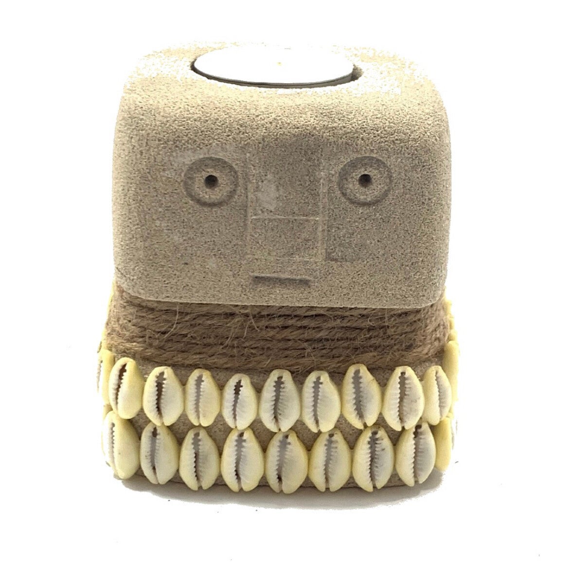 Sumba steenmannetje wit van 9x8x8 cm met bovenop een waxinelichthoudertje.
