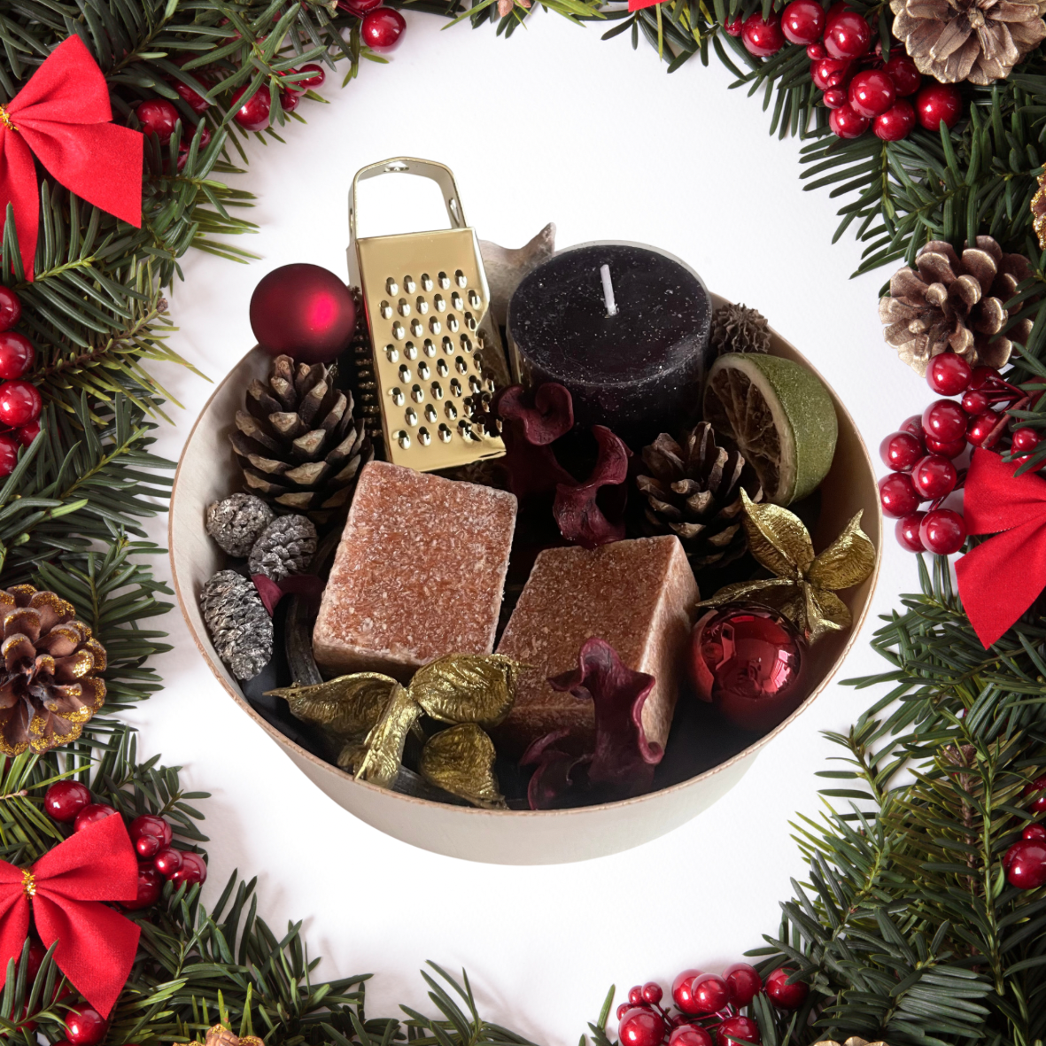 Giftbox Kerst Amberblokjes, schaaltje, kaars & raspje